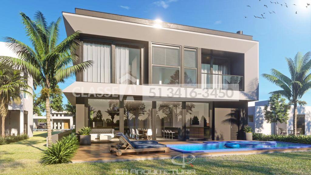 Em localização muito privilegiada no Condomínio Enseada, a beira do lago e próximo a casas de alto padrão. Essa residência foi construída em 02 pavimentos, possuindo 438 m2. Living muito amplo com 127m2, vestiário com acesso à piscina. Pisos Porcelanato 1m x 1m, com aquecimento no andar superior e dormitório do térreo. Aquecimento também no granito das banheiras. Aquecimento solar de água com reservatório de 800 litros. Suíte máster com 50m2, com closet, banheira de hidromassagem redonda com 1, 80m de diâmetro, duas duchas, 02 lavatórios e sanitário separado. Suíte auxiliar muito ampla, com 36m2 + sacada, com banheira de hidromassagem para casal. Suíte térrea muito espaçosa e próxima a sala de estar e hall de entrada. Lareira e churrasqueira com revestimento em granito. Piscina em concreto com SPA integrado, deck no entorno com pedra solarium, chuveiro em madeira tratada. Esquadrias em PVC de linha superior na cor preta. Ajardinamento com árvore de grande porte e sistema de irrigação automática. Espera para Split e k7, bem como para automação de cortinas, luzes, etc. O Enseada é um dos condomínios mais luxuosos do litoral norte, que conta com completa infraestrutura, segurança 24 horas, quadras poliesportivas, piscinas, fitness, paisagismo de alto luxo, bem na entrada da praia de Xangri-lá. Solicite mais informações sobre condições de negociação deste imóvel com um de nossos corretores. Confira!